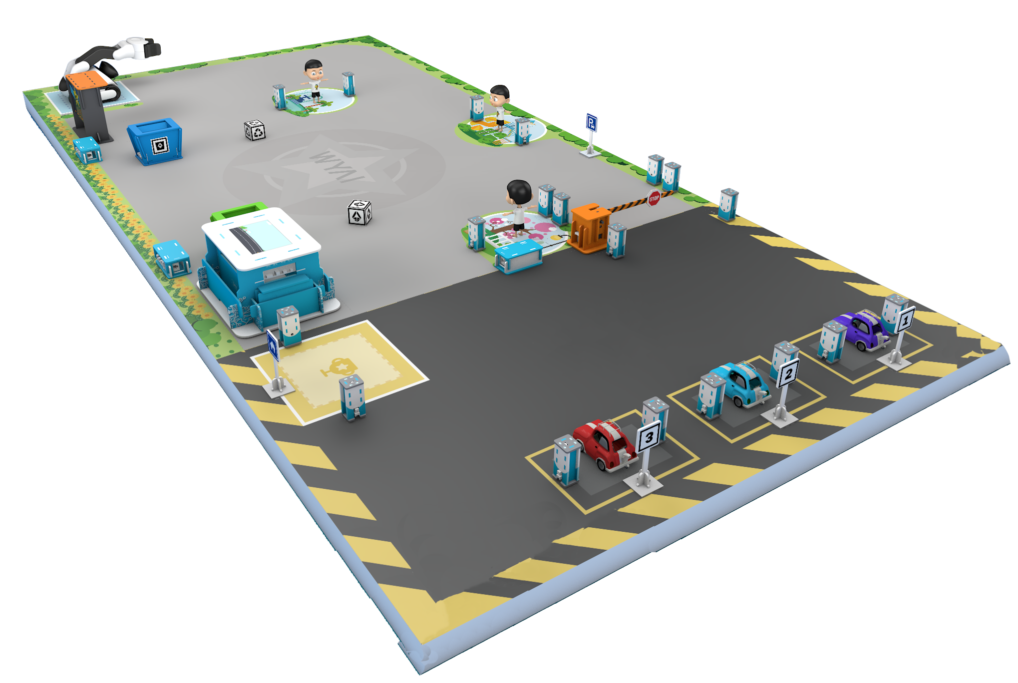 智慧社區(qū)AI教育主題套件模擬了真實的智慧社區(qū)場景,可支持機器人完成垃圾分類,人臉識別,車輛識別等任務。套件中的智慧大腦可同時監(jiān)測控制所有傳感器、電機、顯示模塊等。AIOT系統(tǒng)可實現(xiàn)社區(qū)公告、智能監(jiān)控、車位指引、自動判定各項任務完成情況并統(tǒng)計分數(shù)、智能警報等功能,實現(xiàn)無人項目制教學評價和競賽分數(shù)統(tǒng)計。